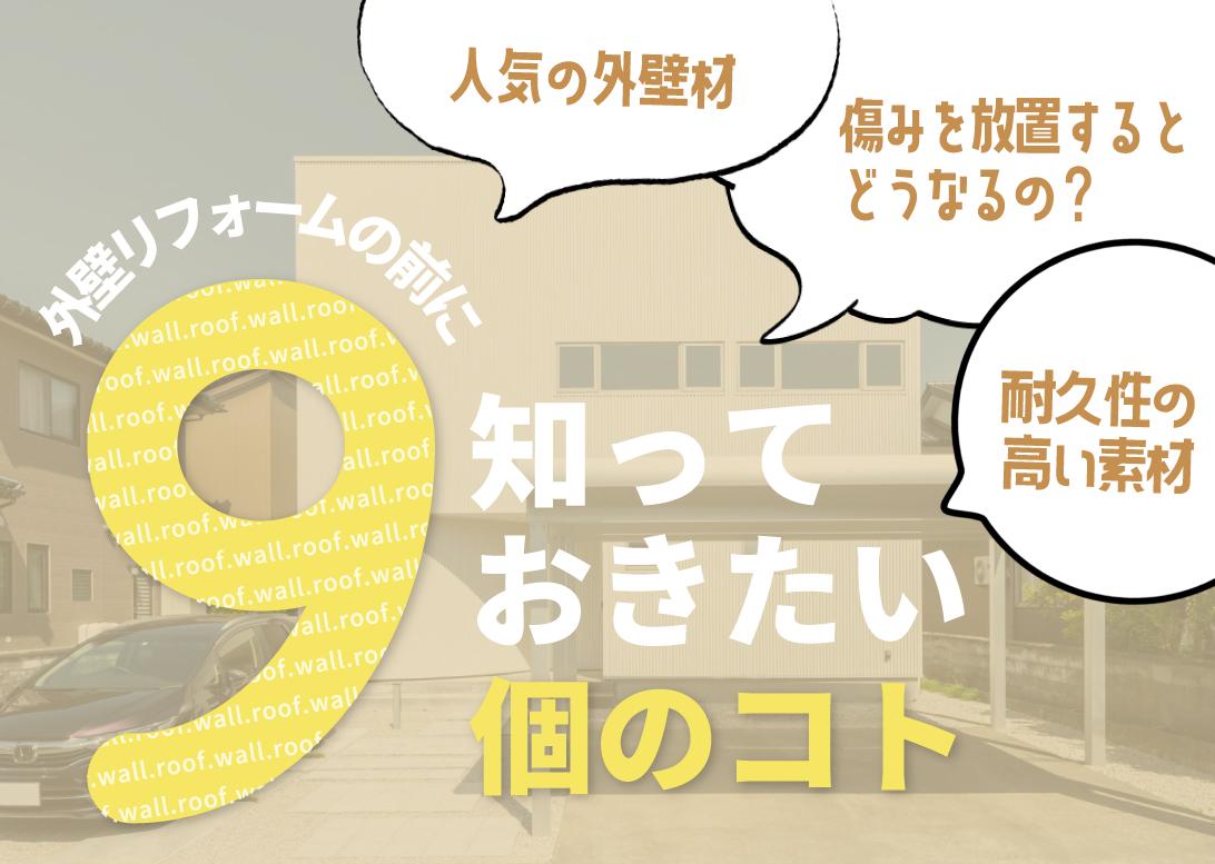 外壁リフォームについて、費用と工期・外壁劣化によるトラブル・外壁リフォームのサイン・3つの方法・外壁材の種類・施工例などをまとめてご紹介します。