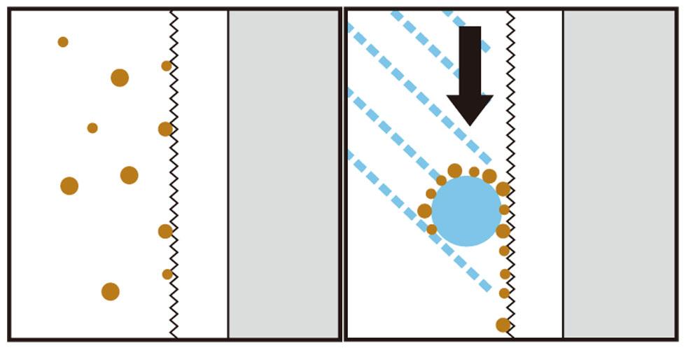 そして汚れの粒を取り込みながら表面を転がっているのです。
