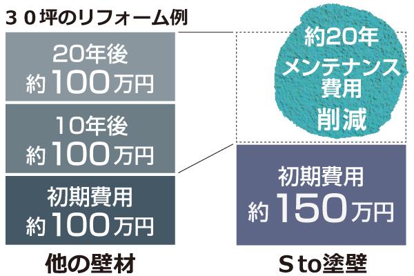 初期費用はほかの外壁材に比べ高めですが、 定期的なメンテナンスの必要がなく、長期的にみれば大幅なコスト削減となります。