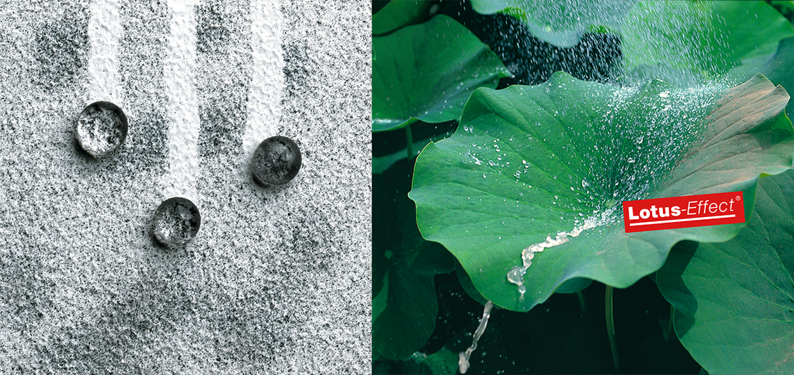ハスの葉のもつ超撥水作用なのですが、ハスの葉の表面を覆う非常に細かい毛によって表面張力が発生し、水が水滴となり汚れの粒子を取り込みながら表面を転がる作用をいいます。