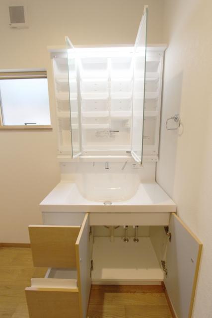 鏡は大きいほうが使いやすいですが必要なのは顔を見ることなので、収納スペースが足りない場合は鏡を小さくすることも考えましょう。最近は鏡を手前に引き出せる洗面台もあり、メイクに長い時間をかける女性に人気です。
