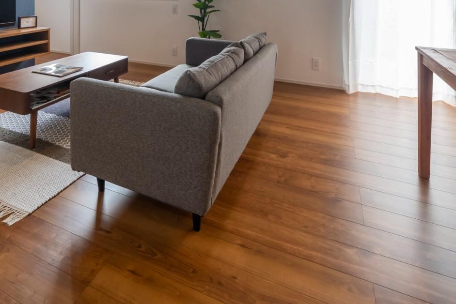 既存のフローリングのうえに新しいフローリング材を重ねて貼る、重ね張り工法を施工しています。