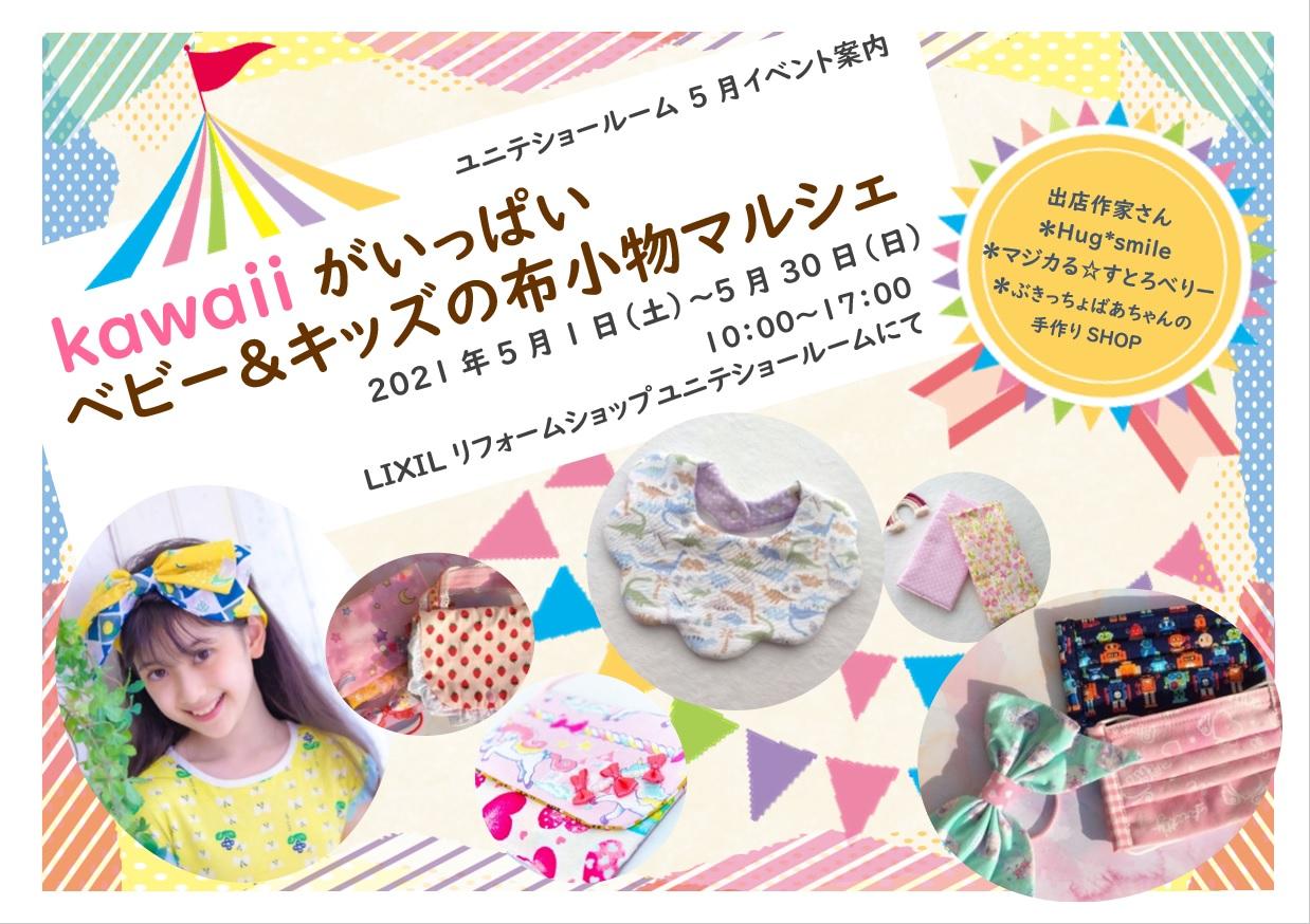 5月の作品展は『kawaiiがいっぱいベビー&キッズの布小物マルシェ』です★
