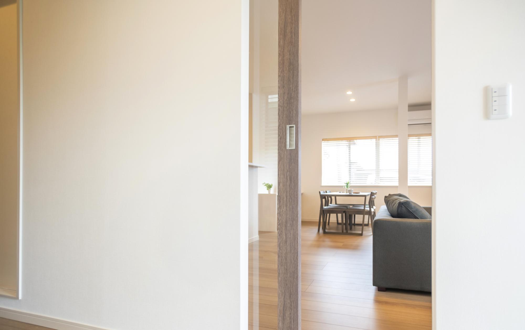 リビングに続く扉は前面ガラスのフルハイトドアを使用。