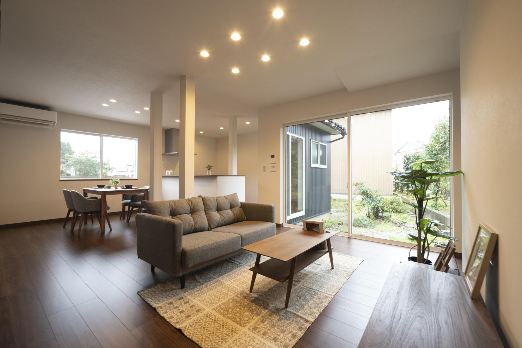 施主様のご要望で、光を多く取り入れられるリビング窓に。