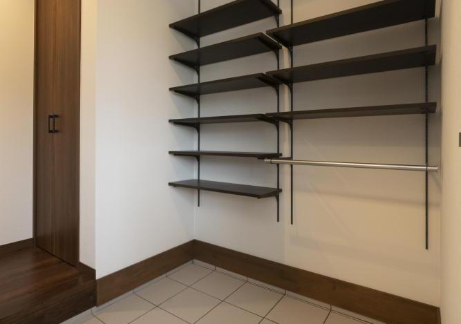 シューズクロークは、コートや雨具なども掛けられるようになっています。