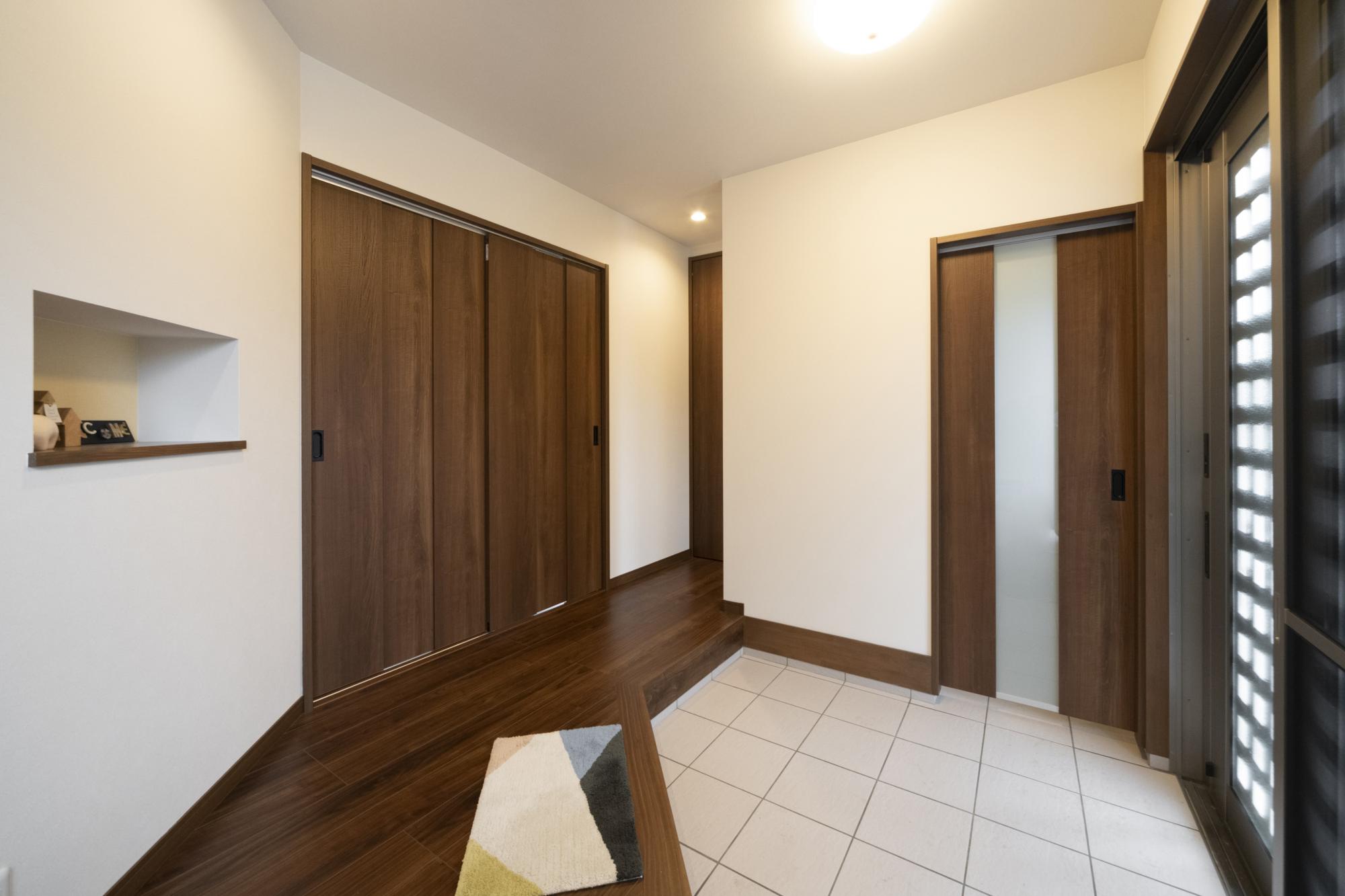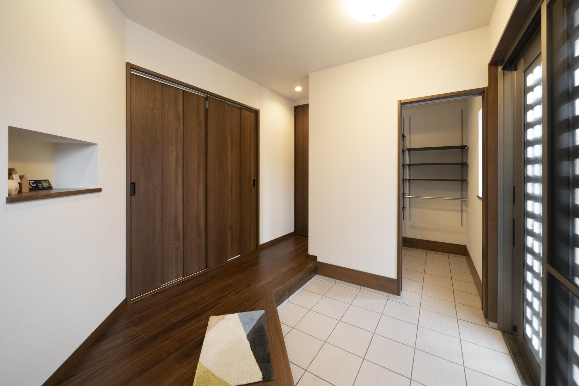 玄関の位置を変えると運気が上がるとのことで風水にもこだわった広々とした玄関になっています。
