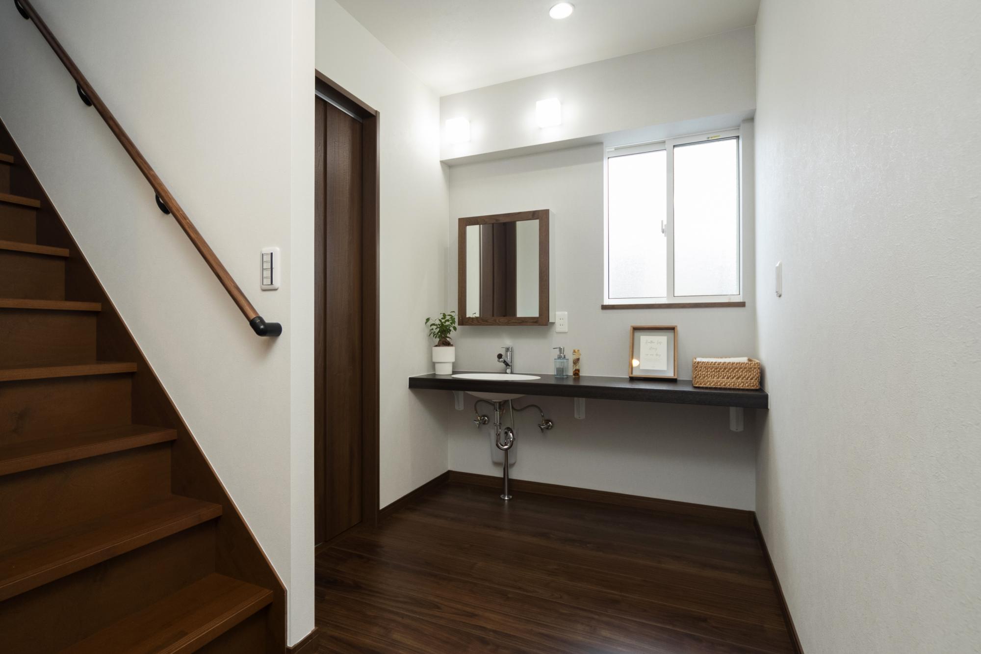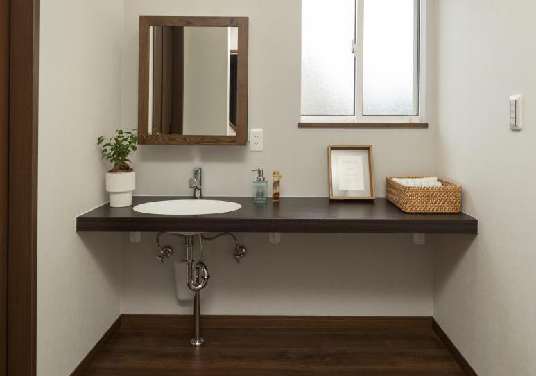 洗面カウンターは、車いすのままでも使用できる高さにしています。