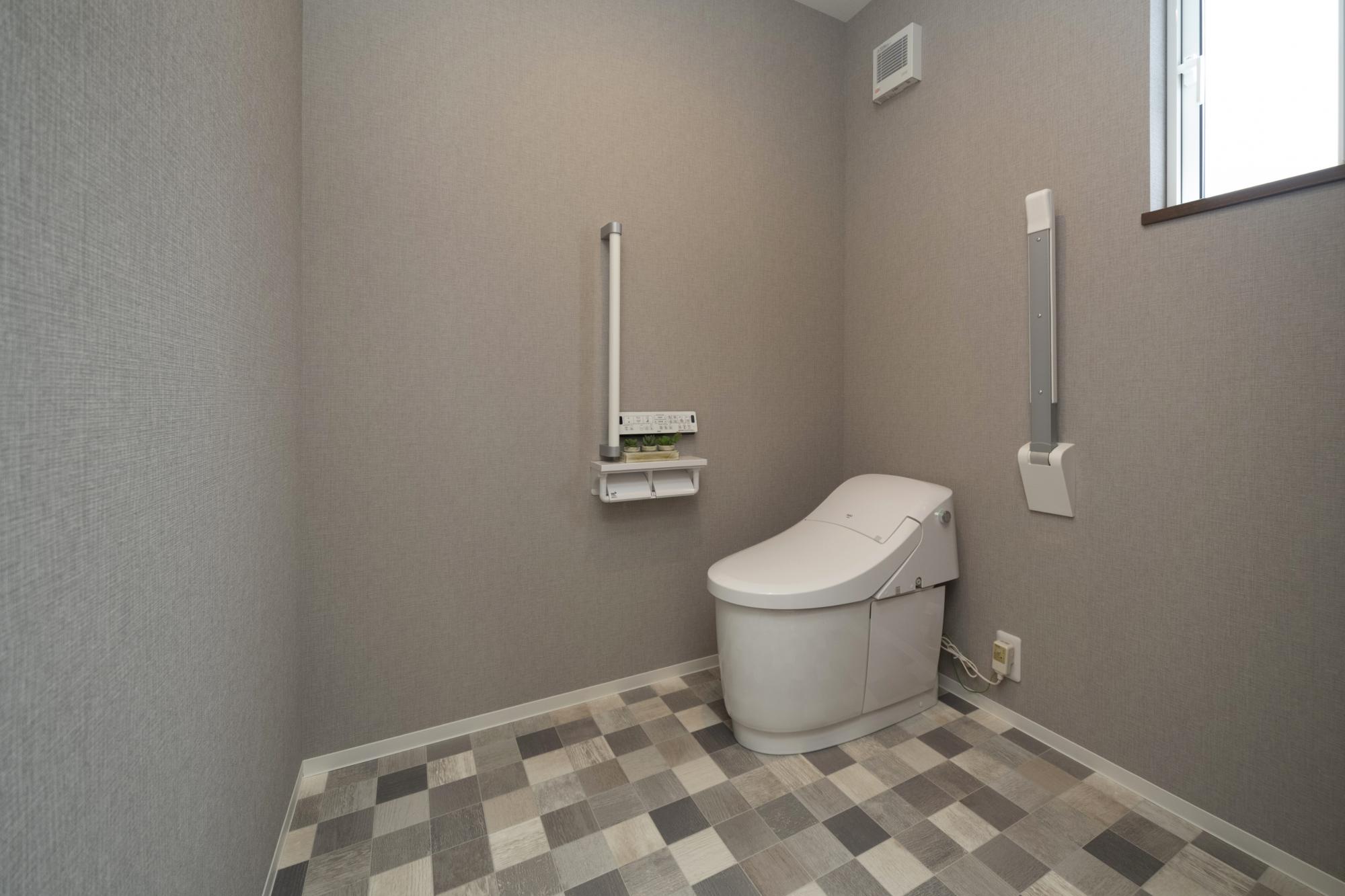折り畳みの手すりや水はけの良いクッションフロアを使用しています。