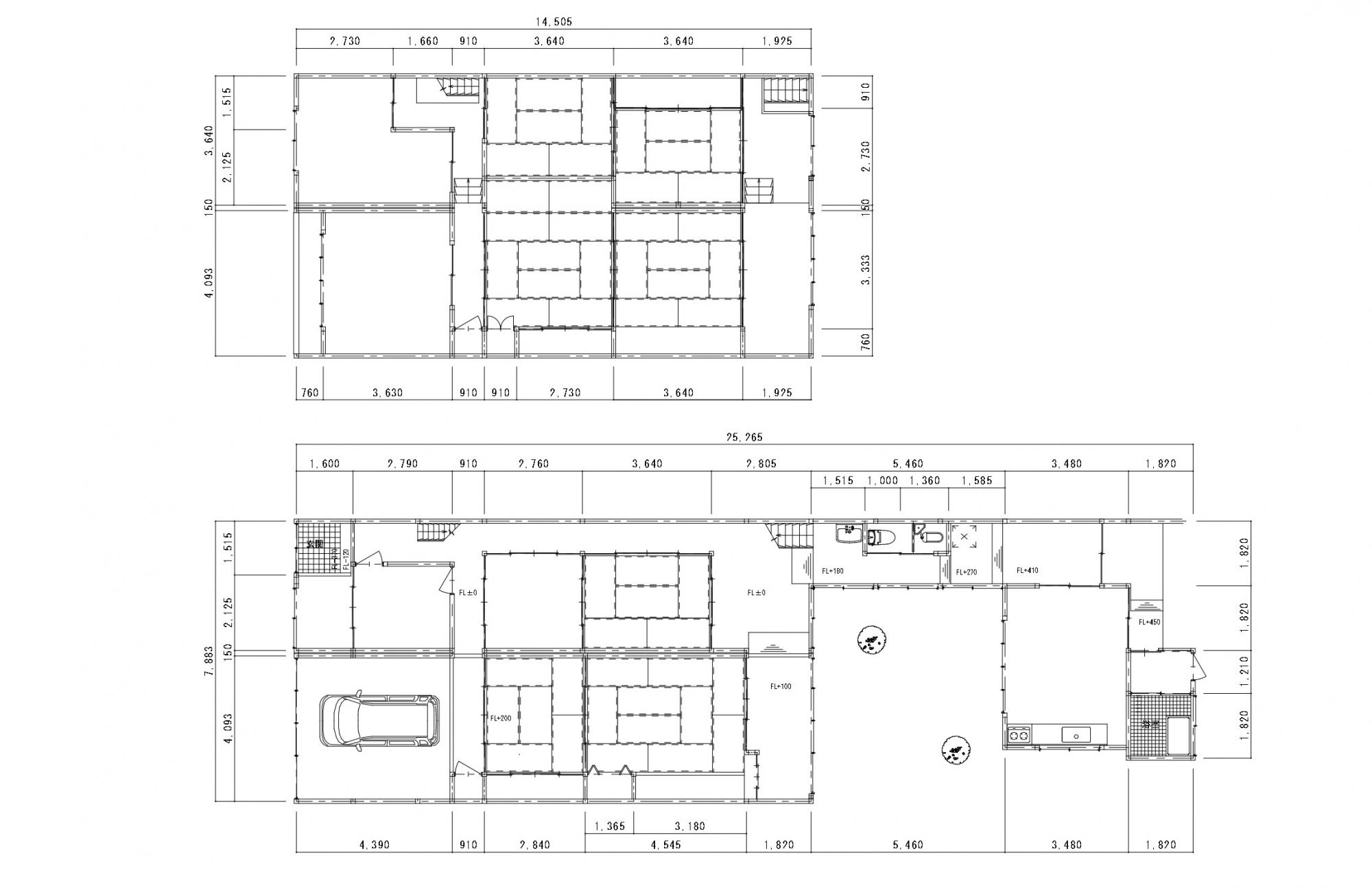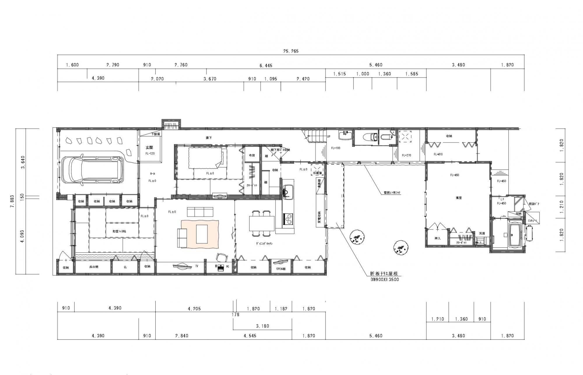 車庫と玄関が道路に直面した危険な状態から、間口を広げゆとりある空間に。