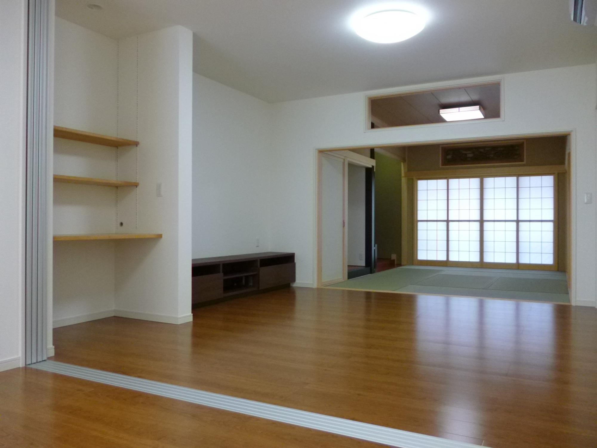リビングには棚とテレビボードを造作しました。