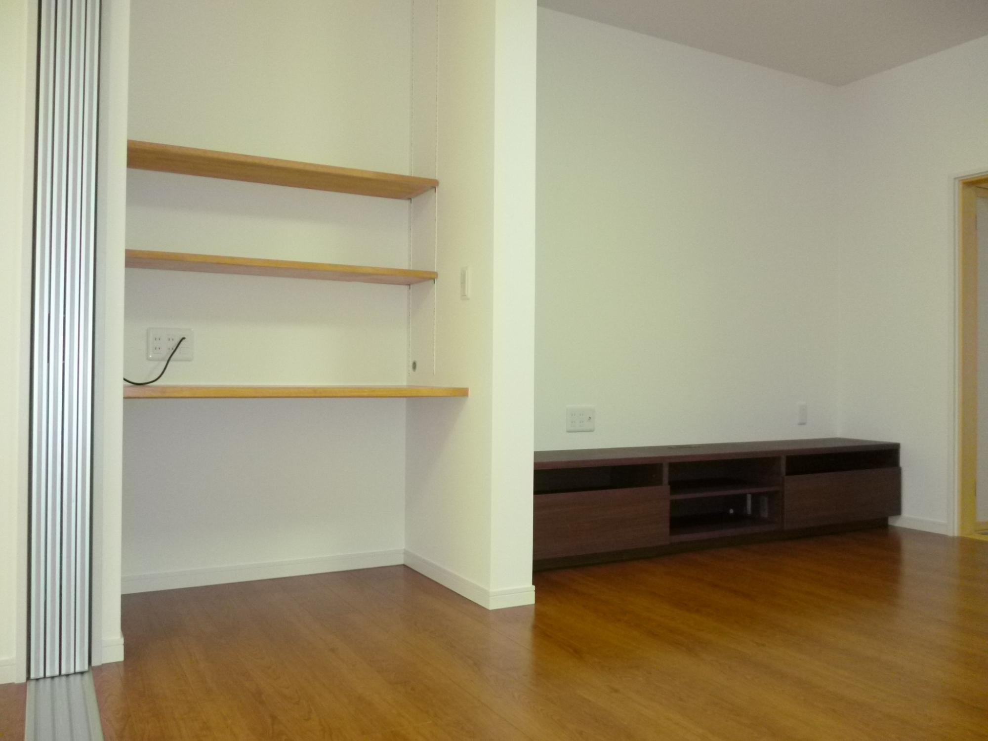 壁にはテレビなどが置けるスペースを用意しました。