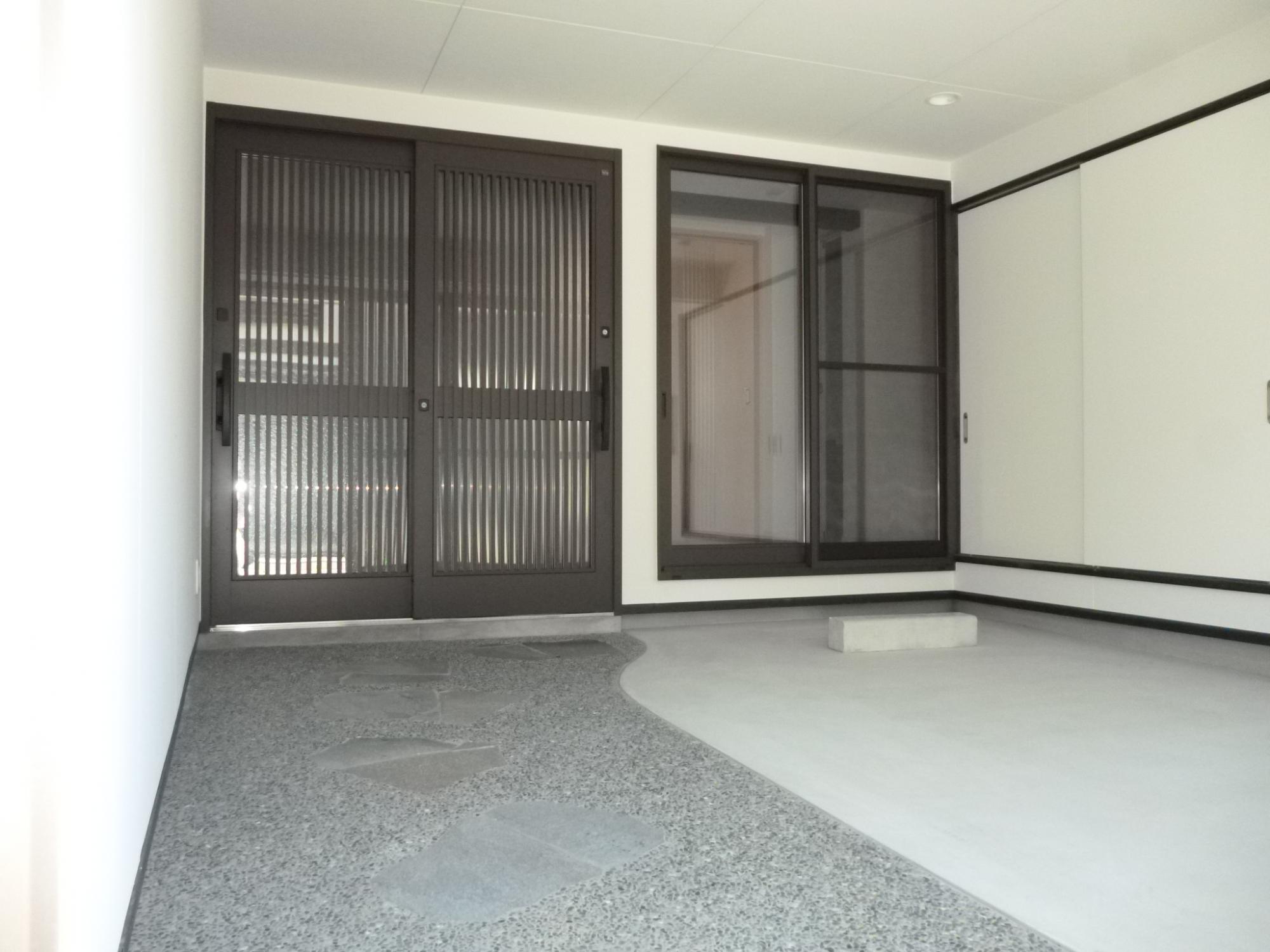 以前は別々だった車庫と玄関を一緒にし安心して過ごせる空間にしています。