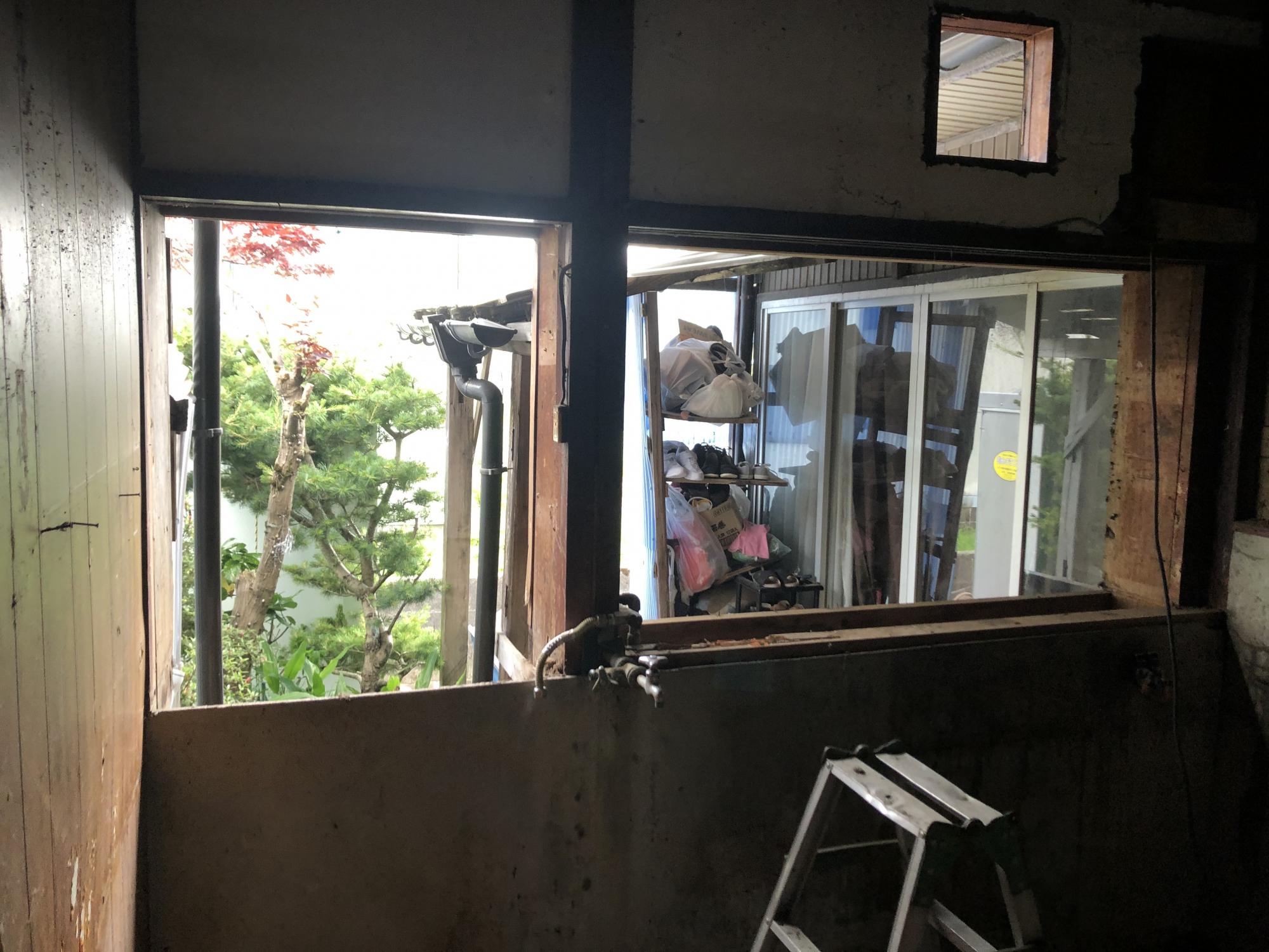 お客様より、『ガス窯を置きたい・西日が強く風も強いので窓を何とかしてほしい』というご希望がありました。