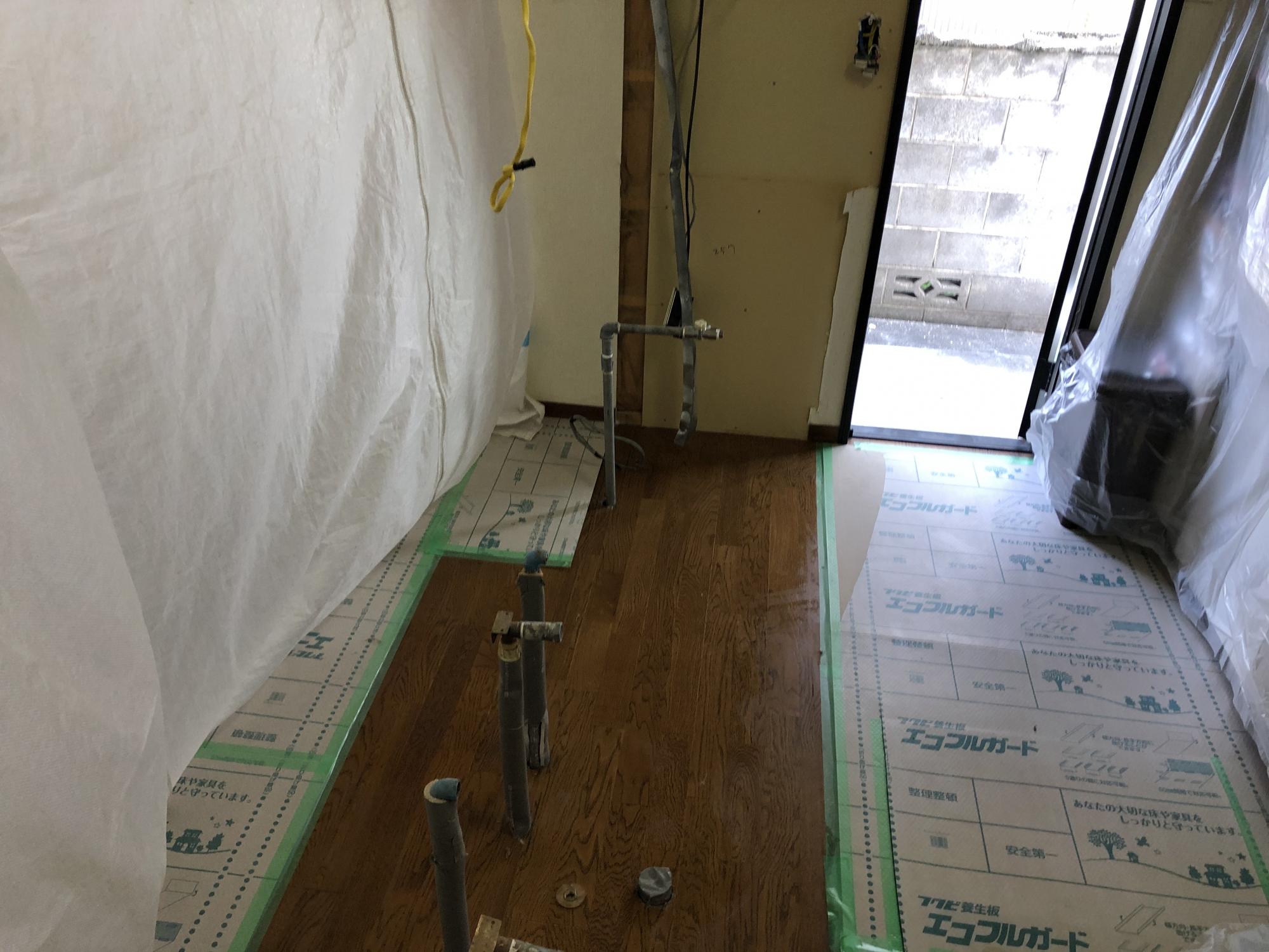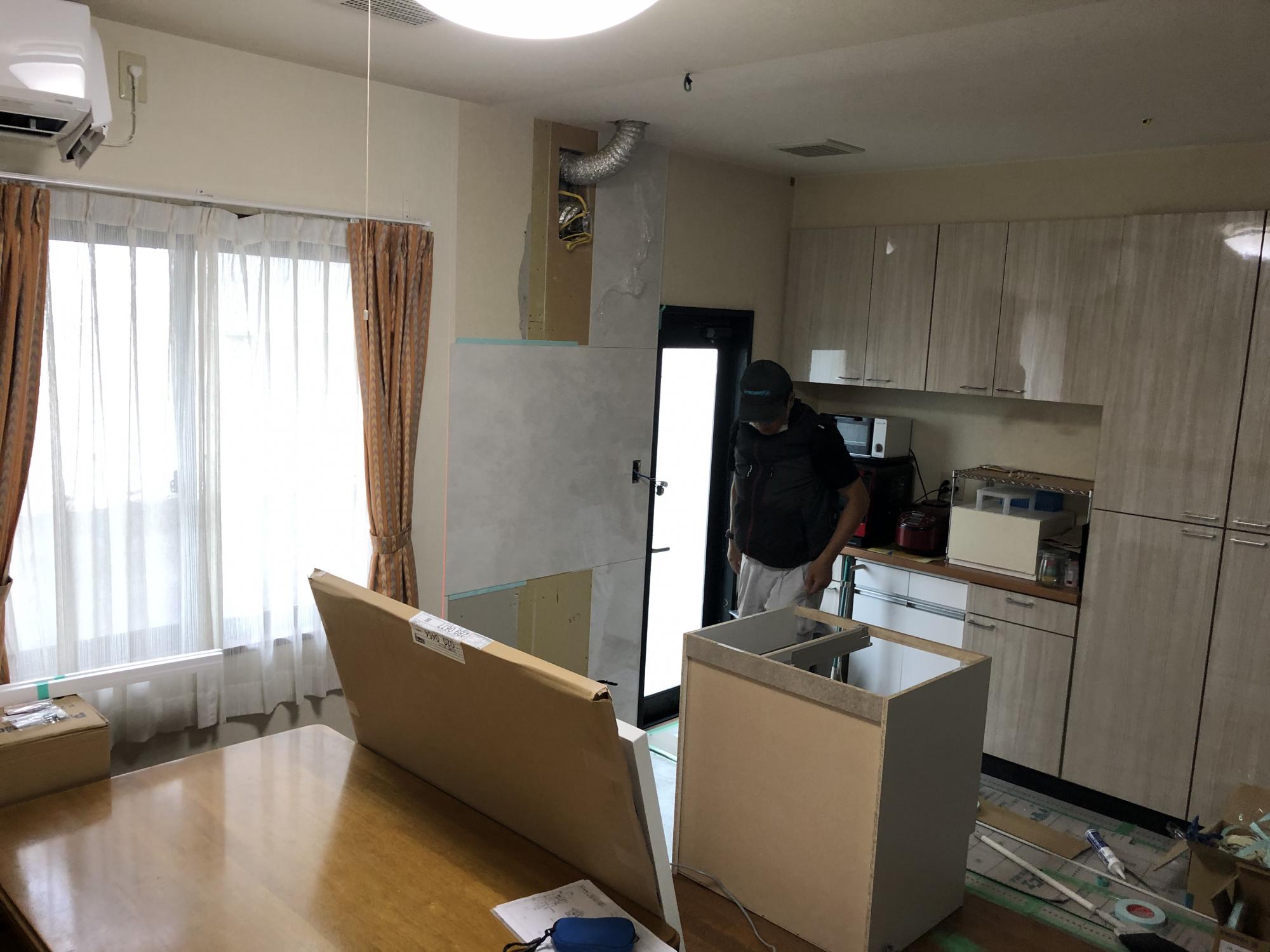 以前付いていた吊戸棚と暖房機をやめ、キッチン裏に収納を作りました。