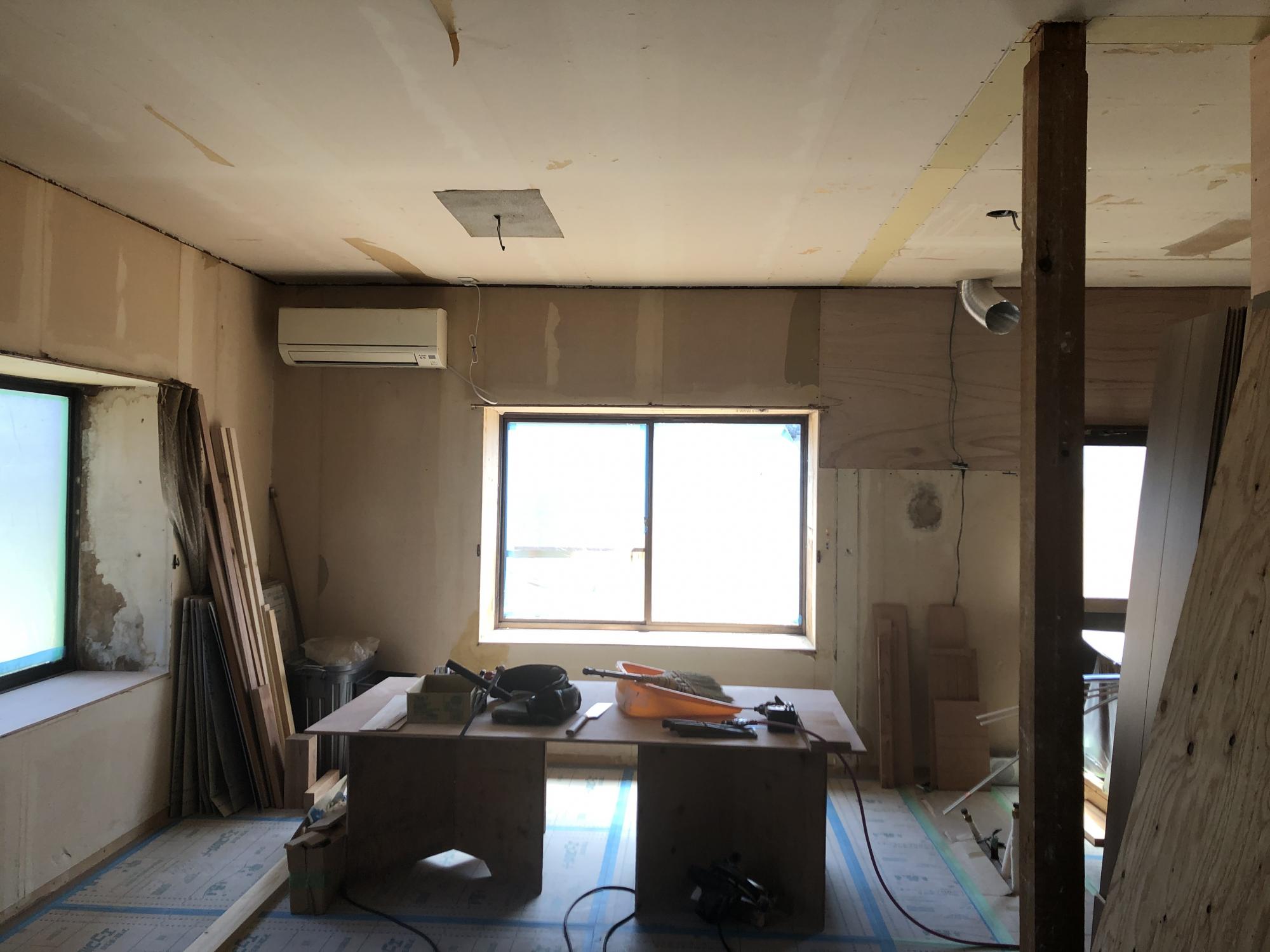 キッチンの位置が変わるので間取りも少し変更し、床も新たなクッションフロアを貼りました。